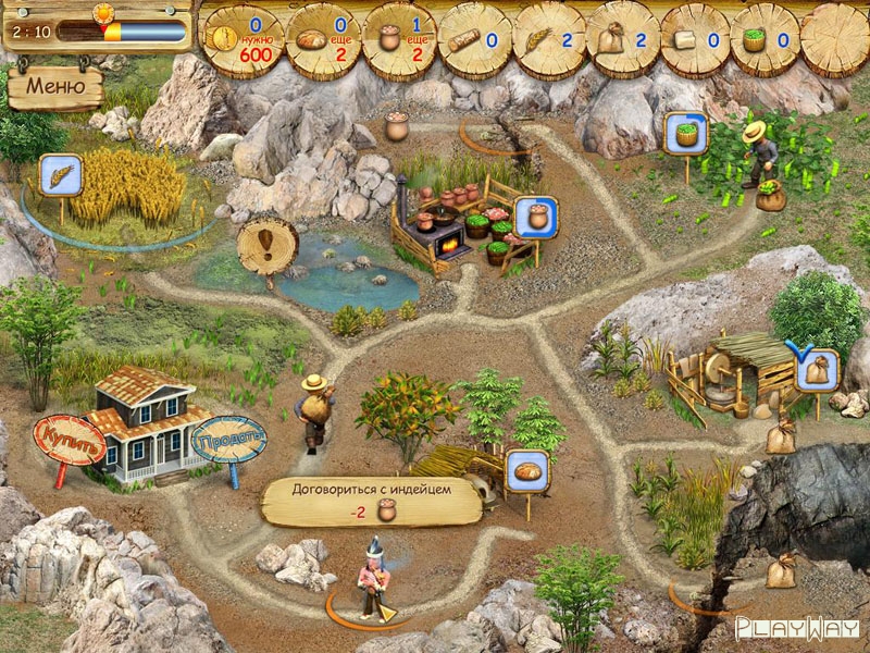 Описание игры: Покорение Америки – увлекательный квест, в котором вам предстоит освоить новые земли и сделать их пригодными для жизни. В самом начале у вас не будет возможности нанять помощника, поэтому вы будете управлять только одним героем. Времени на цели будет уходить немало, но если собрать сундуки с золотом, или со временем заработать денег с продажи полученных товаров, то можно будет быстро это исправить. Старайтесь задействовать перерабатывающие заводы, которые будут вам доступны уже после первых уровней. Мука стоит дороже, чем зерно, поэтому лучше не тратить время на сбор урожая, а сразу перерабатывать. Продажа товаров и их покупка будет занимать какое-то время, так что старайтесь распределять трудовые ресурсы так, чтобы рабочие не тратили время впустую. Старайтесь планировать все заранее, и вы сможете без труда уложиться в сроки.