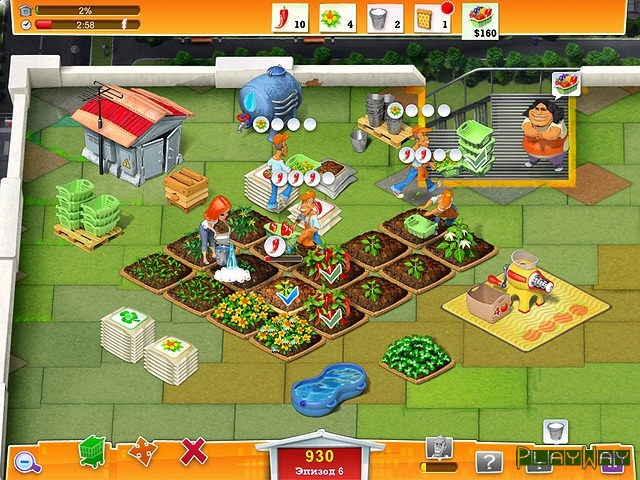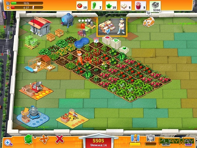Дистрибьютор: Alawar EntertainmentНе успела Лиза преуспеть в фермерском хозяйстве, как тут ей поступило новое предложение – поучаствовать в новом реалити шоу, инвестором которого является ресторан. Они очень заинтересованы в экологически чистых продуктах и… получении прибыли за счет показов по телевидению. А самое главное, для пущей зрелищности, ферма будет находиться на крыше небоскреба в самом центре города. Поэтому прежде чем устроить там ферму и обустроить ее – необходимо подготовить все и приступить к заданию. Лизе понадобится ваша помощь, поскольку сама она не справиться со всеми делами. Необходимо вскапывать грядки, закупать семена, следить за животными и не забывать выполнять план по выращиванию овощей и фруктов.