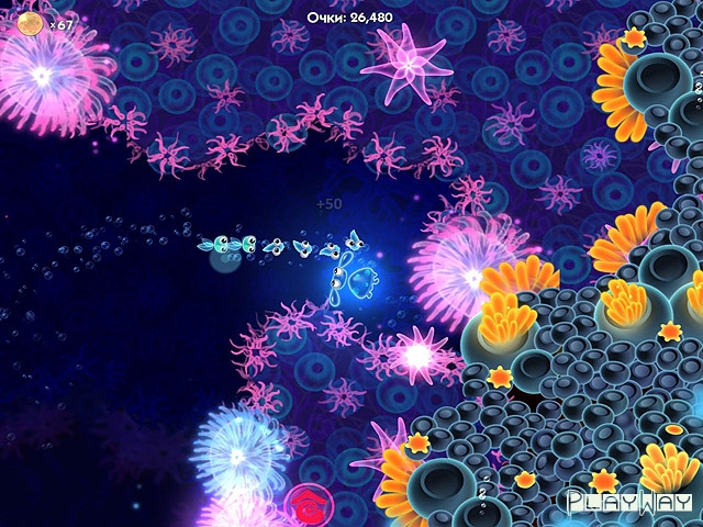 Описание игры: Неон и его команда – это подводные приключения, в которых вы примите непосредственное участие. Двигая курсором, вы будете управлять главным героем, и собирать всех рыбок, которые попадутся вам на пути. Защищайте их от врагов. Если они меньше, чем Неон по размеру, вы сможете уничтожить их, просто налетев. Если они крупнее – очертите круг вокруг них и специальные снаряды постепенно уничтожат соперника. Главное правильно действуйте в таких ситуациях, иначе соперники вас одолеют. А как только найдете ближайший телепорт – сразу же отправляйте туда всех собранных рыбок. За это вы получите целый ряд бонусов и дополнительных очков, за которые сможете приобрести особые магические навыки, которые в будущем помогут вам справиться с этим нелегким заданием.