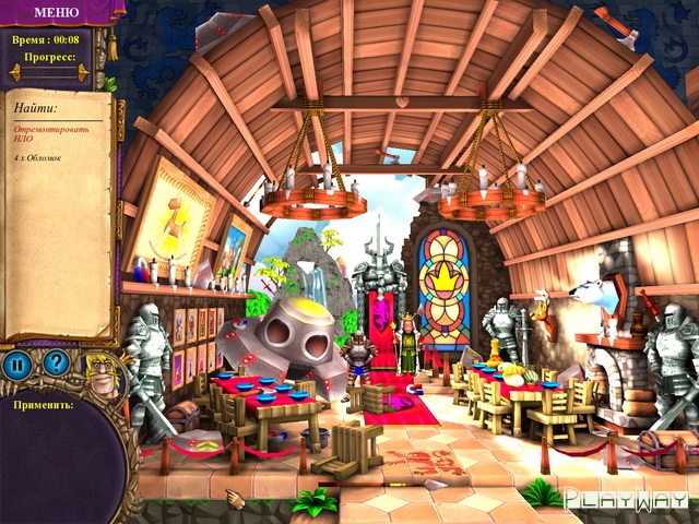 Описание игры: Приключенческая игры Королевский детектив относится к жанру квестов, где вы постоянно будете выполнять какие-то задачки. В зависимости от выбранного режима сложности, вы сможете быстро и легко пройти игру или же поломать голову над выполнением тех или иных заданий. В левом углу вы получите список предметов, которые нужно найти, а внизу будет панель с надписью Ќприменитьџ. Именно туда будут попадать все собранные вещи и, взяв их оттуда, вы сможете взять и применить, где это будет нужно. На протяжении всего пути вы также повстречаете различных персонажей, которые будут постоянно задавать вам непростые задачки. И чем дальше вы будете продвигаться – тем сложнее они станут. Следите за появлением заданий, осматривайте все уголки предложенной территории, и вы обязательно найдете возможность вернуть принцессе ее былое лицо.