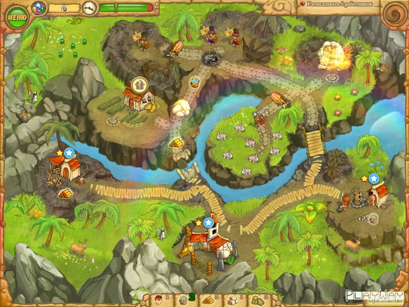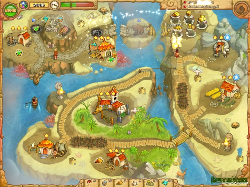 Предыдущие версии игры За семью морями – это приключения островитян, который в один миг остались без круши над головой. Как и в предыдущих реализациях, вы будете выполнять серию заданий, и в итоге сможете восстановить храм. Постарайтесь сначала собрать ресурсы, а затем потратить их так, чтобы остальные тоже стали доступны. Не все тропинки будут доступны сразу, поэтому нужно будет потрудиться, чтобы отремонтировать лодочную станцию или развеять туман.