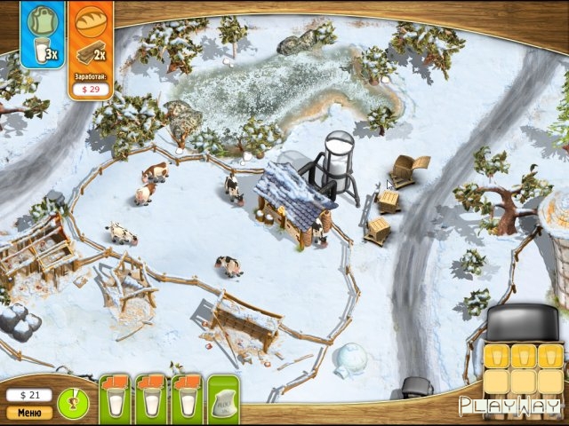 Описание игры: Youda Фермер 3. Сезоны – это очередной бизнес симулятор, который является продолжением целой серии игр. Здесь вам придется заново – отстроить ферму и все необходимые здания, а также наладить доставку всех необходимых товаров до пунктов назначения. В ходе игры вы сможете зарабатывать средства и вкладывать их в развитие своей фермеры. Можно увеличивать количество произведенных товаров, ускорить автомобиль, разнообразить производимые товары и прочее. Главное с самого начала пройти обучение, особенно если вы новичок в подобных играх. Также следите за вредителями – они постоянно будут стремиться уничтожить весь ваш урожай. И если им это удастся, то вы попросту останетесь без продуктов и денежных средств.