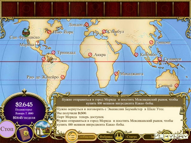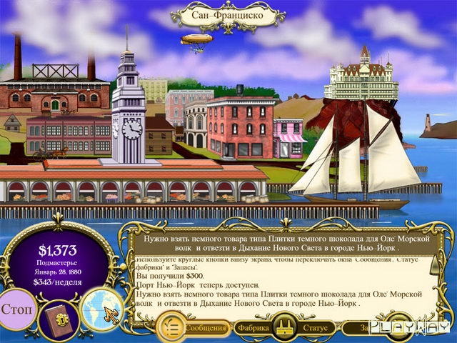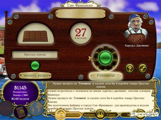 Описание игры: В увлекательном квесте Шоколатор вы познаете все секреты приготовления шоколада. Вся игра делится на несколько эпизодов, и каждый из них неповторим. Сами вы, конечно, не справитесь, но верная помощница всегда подскажет, где купить составляющие для шоколада и к кому обратиться за подсказкой или советом. Это не просто игра на умение быстро составлять комбинации или разгадывать головоломки – это настоящее приключение, способное увлечь даже самых опытных игроков. Наладьте работу своей фабрики, заработайте себе славу лучшего кондитера мира, и вы обязательно достигнете намеченной цели.