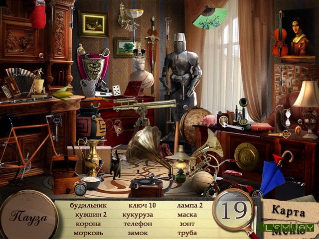 Описание игры: В игре Детективное агентство вы станете настоящим следователем и сможете заняться собственным делом об исчезновении редкой вещи. Как и в других подобных играх жанра Ќя ищуџ будет список из предметов, которые находятся в комнате или территории. Основная задача – найти их и они автоматически будут вычеркнуты из списка. Когда ничего не останется, вы сможете прейти в следующий этап. Помимо поисков, вы должны будете разгадывать и небольшие головоломки, правила которых будут излагаться по мере их появления.