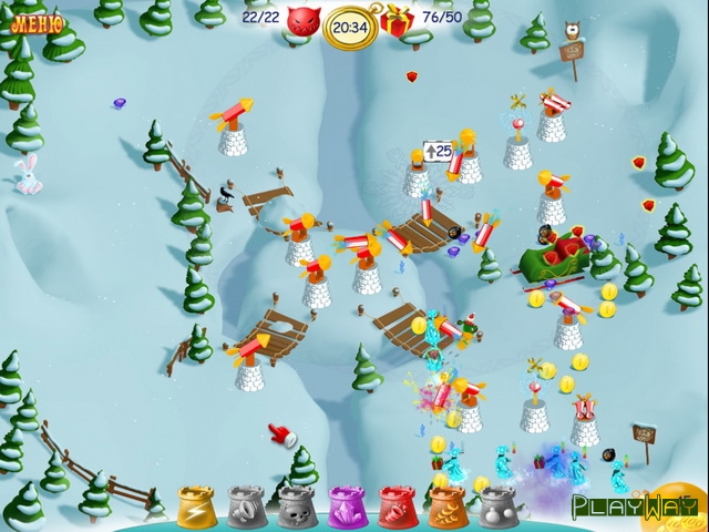 Дистрибьютор: Alawar EntertainmentСовершено дерзкое преступление – из домика Деда Мороза были украден все новогодние подарки, и теперь праздник под угрозой срыва, начинается Рождественский переполох. Злобные монстры, живущие в лесу неподалеку, буквально за два дня до праздника унесли все, что было. И теперь, чтобы вернуть все подарки на место, нужно будет выследить местоположение злодеев, и с помощью магии – заставить их вернуть украденное. За это дело берется один из старших Эльфов, но в одиночку он вряд ли справится с таким количеством соперников. Помогите ему выстроить нужное количество башенок, которые станут мощным оружием против монстров. Старайтесь отобрать если не все, то как можно больше подарков, ведь праздники уже не за горами.
