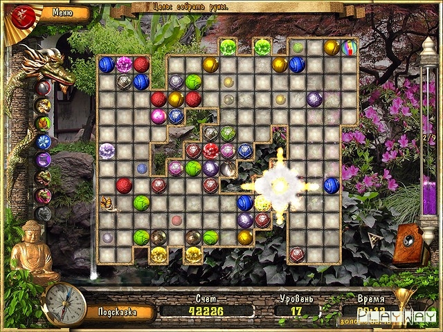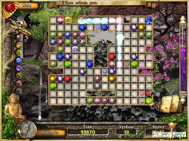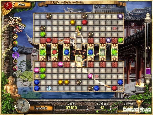 Немного переиначенная игра в стиле Ќсобери тройкуџ, хотя здесь нет таких строгих правил. Если в большинстве реализаций шары нужно выстроить в ряд по горизонтали или вертикали, то здесь главное, чтобы они находились рядом друг с другом, и не важно, что не на одной линии. Поэтому можно сказать, что Загадки Дракона несколько легче и подойдут тем, кто только знакомится с подобными играми.