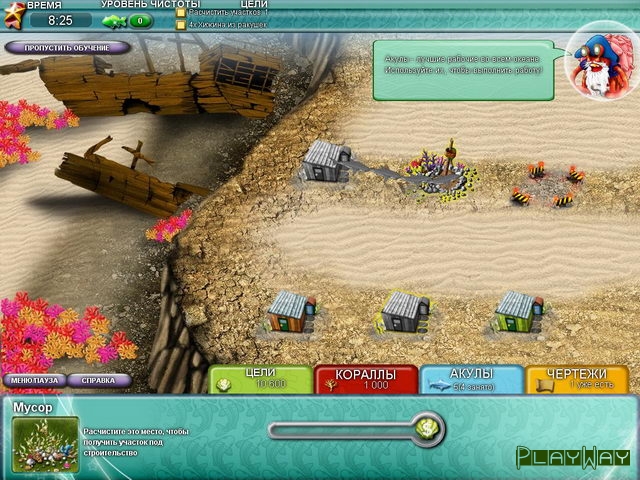 Описание игры: Акваландия – это бизнес симулятор, в котором игроку нужно будет выстроить города и поселки на морском дне. В самом начале вы найдете стартовый капитал в виде небольшой суммы денег, одного чертежа по которому получится выстроить самый простой домик, а также ограниченного количества рабочих, выполняющих работы по сносу и строительству зданий. Первый этап станет обучающим, и опытный капитан будет рассказывать вам обо всех деталях игры, а дальше вы должны будете самостоятельно решать все возникающие проблемы и выполнять все поставленные задачи.